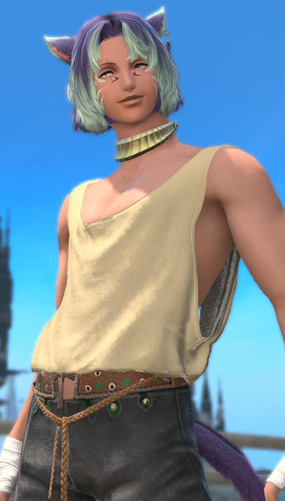 EARLY CHILDHOOD Zereth was born in Gyr Abania to a sunseeker tribe, wherein his bicoloured eyes marked his birth as a sign of good luck. A sign that was well needed indeed, for his tribe had suffered greatly during Theoderic's reign, and was now facing a possible invation by the Empire.Around the time he's five years old, The Black Wolf takes over Ala Mhigo, and Zereth's tribe decides they can no longer stay. Having heard of another sunseeker tribe living in relative peace in Thanalan, they load up their home into a couple of caravans and set out to try and cross the border, traveling under the cover of darkness. They don't make it.They're intercepted by a group of imperials. Zereth has faint memories of that night; he was young and scared and confused... but the one thing that yet haunts him to this day is the memory of his mom desperately hiding him up in a tree and repeating these words:"Keep quiet, if you make a sound they'll kill you. Don't. Say. A word."His whole tribe died that day, and if there were any prisoners Zereth does not know who they are or where they were taken. All he could do was cling to the tree trunk and shiver in silence. He stayed there for two days, afraid that if he so much as moved someone would find him. He couldn't even look down.Eventually, a group of soldiers working to smuggle people out of the nation stumble upon the scene, and one of them (a Roegadyn lancer named Intrepid Hyacinth) finds little Zereth up in the tree, dehydrated and on the verge of passing out. They bury the bodies and carry Zereth off to The Shroud to recover, and the Roegadyn soldier decides to adopt him and raise Zereth as her own son. This is when he gains his last name. LIFE IN THE SHROUD After such a traumatic event it came as no surprise that Zereth was in an almost catatonic state. Even as his body recovered he refused to speak, and he'd sometimes be found curled up in tight corners. This is when Intrepid Hyacinth decides to move back to her old village, a small, homely place inhabited mainly by retired soldiers, farmers, and families with young children. The quiet, peaceful setting of this village helps ease Zereth's fear, and thus his path to recovery begins.Seeing as he wasn't going to talk anytime soon, Intrepid Hyacinth teaches Zereth how to sign. It helps both of them bond, and even though it takes a good couple of months, she eventually gets to hear the little miqo'te speak for the first time. He still prefers to communicate through sign, and not many people will get to hear him for years, but the whole village comes together to help heal his heart.He spends the rest of his childhood growing up surrounded by nature and training with the retired soldiers. He's taught to hunt and forage and be self-suficient, helping out in the fields and learning how to mend his clothes. In a village as small and secluded as this one, they all rely on each other, and little Zereth was not going to be a burden to the people who helped him so.His trauma will never leave him. It'll always be there, like a scar on his soul, aching and refusing to heal. But he can carry it thanks to the people who raised him, and so, once he's old enough to do so, Zereth sets off as an adventurer in order to make money to help out those back at home. DIVERGING PATHS From here Zereth's story can take many routes... Will he travel to Gridania and meet with Papalymo and Yda, eventually becoming the Warrior of Light? Or does his traveling bring him to Thanalan, where he joins the Scions as a regular member. Maybe he just keeps living as an adventurer, selling his services in order to gain more coin...Only time will tell.